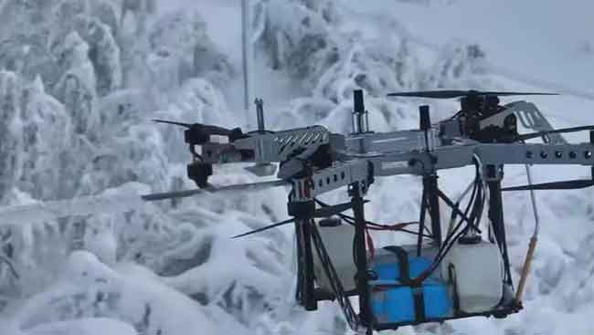 Чтобы не зацикливаться на трубопроводах, отметим такую востребованную в наших широтах и севернее тему, как очистка ЛЭП от снега и наледи. В мире сейчас популярны дроны-снегоочистители класса «щас посшибаю» – соцсети полны эффектных видеороликов. А вот компания «Россети Урал» презентовала дрон, который борется с обледенением ЛЭП куда более тщательно: садится на провода, очищает их, наносит противогололедную жидкость. Это сокращает риски обрывов и аварий на ЛЭП и позволяет быстро обрабатывать значительные участки сетей.