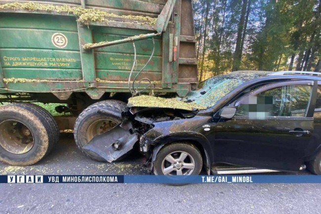 8 октября около 09.30 72-летний водитель Toyota RAV4, двигаясь со стороны городского поселка Ивенец в направлении деревни Вертники, пошел на обгон попутного авто и выехал на полосу встречного движения. Заметив другую машину и пытаясь избежать лобового столкновения, вернулся на свою полосу. При этом не рассчитал дистанцию и совершил лобовое столкновение с полуприцепом трактора «Беларус», которым управлял 23-летний водитель, сообщает УГАИ УВД Миноблисполкома. От полученных травм водитель Toyota скончался на месте происшествия. На момент аварии он не был пристегнут ремнем безопасности.