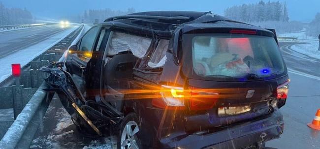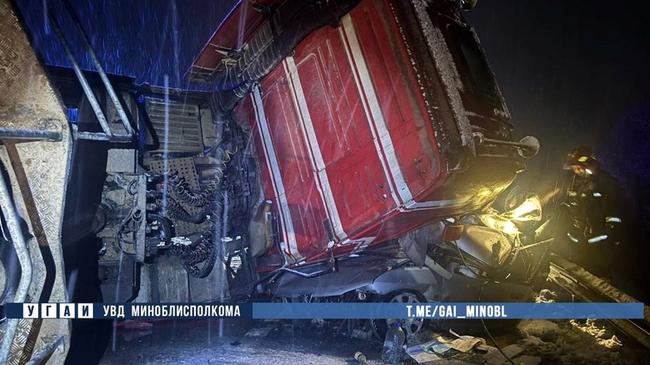 25 ноября около 16.40 на 56-м км дороги М-14 в Минском районе 29-летний житель Молодечно на Seat, не справившись с управлением, столкнулся с попутным полуприцепом в сцепке с седельным тягачом Volvo под управлением 65-летнего жителя Гродно, сообщила ГАИ Минской области. Seat отбросило на барьерное ограждение. В ДТП травмированы три пассажира легковушки, в том числе 5-летний ребенок.