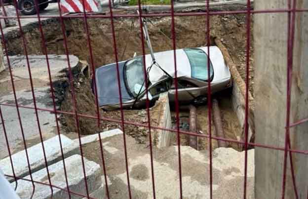 1 июля в Иркутске (РФ) на перекрестке улиц Чернышевского – Лермонтова автомобиль пробил ограждение и упал в котлован. Водитель с места происшествия сбежал – он в розыске. Не получивших серьезных травм пассажиров с признаками опьянения доставили в отдел полиции, передает rusdtp.ru.