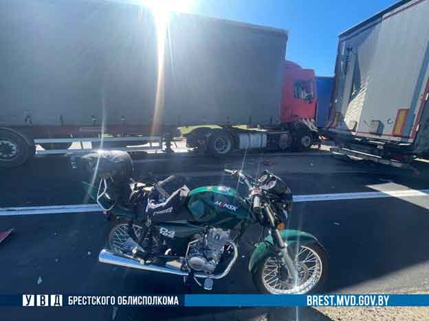2 июля около 08.40 48-летний водитель на грузовике DAF двигался по автодороге Р-83 Брест – Каменец – Национальный парк «Беловежская Пуща», где на 8-м км не выбрал безопасную дистанцию и столкнулся с мотоциклом Minsk под управлением 40-летнего водителя, затем с грузовым автомобилем Scania, за рулем которого находился 34-летний водитель, передает УВД Брестского облисполкома. В результате ДТП мотоциклист погиб.