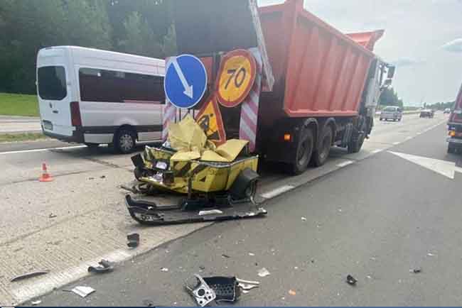 7 июля 29-летний житель Витебской области на МАЗ «Купава» двигался в направлении столицы. Примерно в 13.40, предположительно, уснул за рулем и столкнулся со стоявшим в полосе движения прицепом-платформой в сцепке с автомашиной МАЗ, производящей дорожные работы, сообщила ГАИ Минской области. Водителя «Купавы», не пристегнутого в момент ДТП ремнем безопасности, госпитализировали.