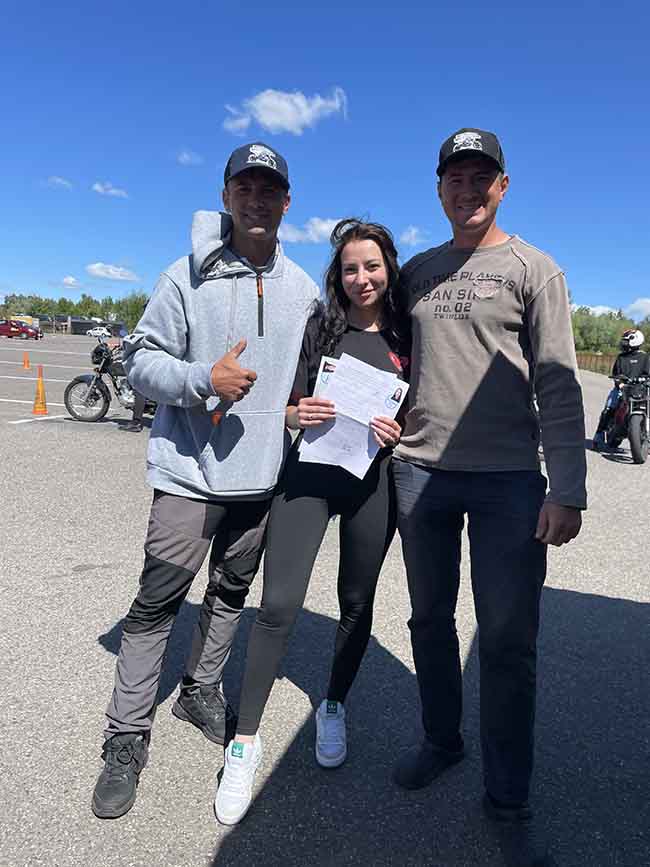 «Хорошо если у ученика есть опыт езды на велосипеде, тогда он умеет держать равновесие, – продолжает Маргарита. – Если возникает необходимость пересдач, то в большинстве случаев это связано с волнением. Мы выпускаем на дорогу полноценных водителей, готовых к езде в городских условиях, на что и рассчитан весь курс обучения. Работаем по СТБ, стараемся соответствовать принятым стандартам. Безопасность – превыше всего, поэтому, когда дело касается экипировки, снабжаем учеников наколенниками и налокотниками и без шлема до руля тоже не допускаем. А Дмитрий и Андрей постоянно совершенствуются – повышают квалификацию за счет участия в различных спортивных соревнованиях по фигурному вождению. В 2022 году Андрей стал чемпионом по мотоджимхане по республике.