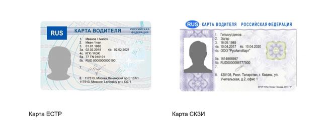 водительских карт: внутренними (СКЗИ) и международными (ЕСТР). Источник: skzicard.ru