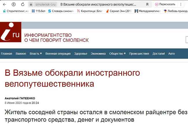 Группа «Пусть говорят Вязьма», «Подслушано Вязьма», «Подслушано Смоленск», «Инцидент Смоленск» и другие информировали общественность об инциденте с известным белорусским велопутешественником, на что полиция не могла не отреагировать активным ведением поисков. Вечером к этому хору небезучастных присоединились и местные СМИ. Так, журналист информагентства «О чем говорит Смоленск» Анатолий Гапеенко после проверки данных опубликовал на сайте статью «В Вязьме обокрали иностранного велопутешественника».