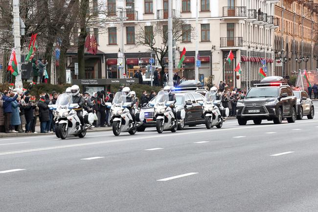 Мотоциклисты СП ДПС «Стрела» эскортируют кортеж главы государства во время его инаугурации 25 марта 2025 года ИА «Минск-Новости»