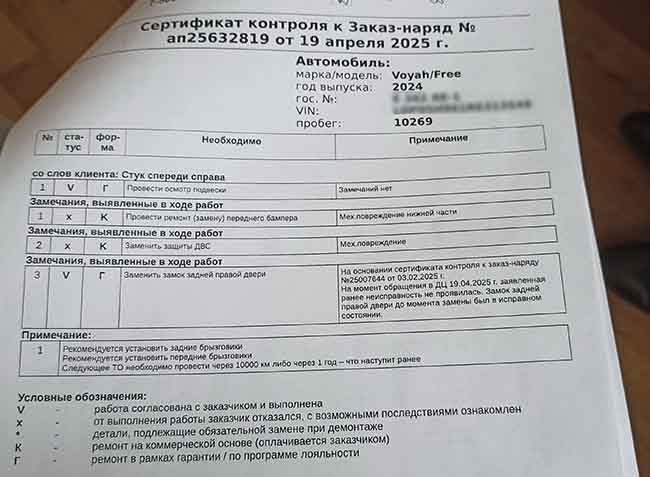 Он составил претензию и направил в головной офис организации в столицу заказным письмом. Письмо было получено 18 апреля, а уже 19-го во время запланированного ТО изыскали и ручку, и замок дверцы (по отдельности их не заменить). Эти манипуляции произведены по гарантии, но насторожило примечание исполнителя работ, что на момент обращения «заявленная ранее неисправность не проявлялась. Замок находился в исправном состоянии». Убедиться в этом Александру не дали, деталей, подвергшихся замене, он так и не увидел.