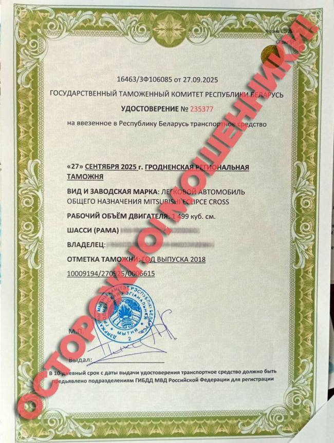 Следующий автомошеннический тренд лишен любого флера – хоть романтического, хоть манипуляторного: просто подделка документов и перевод стрелок на таможню. Только за последний месяц порядка 40 граждан (в целом счет уже идет на сотни) обратились в Гродненскую региональную и Брестскую таможни справиться о судьбе несуществующих авто, пишет тг ГТК Беларуси. Покупатели исправно перечисляли компаниям-мошенникам денежку за саму машину, за утилизационный сбор (порой по ставке, превышающей стоимость транспортного средства), за ввоз, растаможку и т.п., но авто им так и не суждено было увидеть.