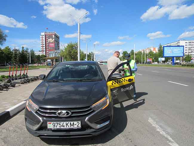 В салоне служебного автомобиля – сотрудники регионального подразделения в Витебске Владислав Малашенко и Эдуард Сухаленок. Мчим на пересечение Московского проспекта и проспекта Победы – это достаточно оживленный перекресток города, где долго ждать такси не надо. Более того, там находится Витебский государственный университет, а на остановку рядом с ним студенты, сгруппировавшись по направлениям, тоже часто вызывают таксистов. Машины с шашечками подъезжают одна за другой.
