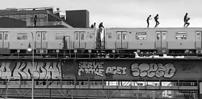 ямсбургскому мосту в Нью-Йорке, СМИ назвали «леденящими», а самих танцоров – «серферами». Хореография, конечно, незамысловатая, но сами ролики, быстро ставшие вирусными, чуть разнообразнее мутных видео с угонами: «серферы» смеются, отдыхают от танцев, свесив ноги с крыши вагона, веселятся и т.п.