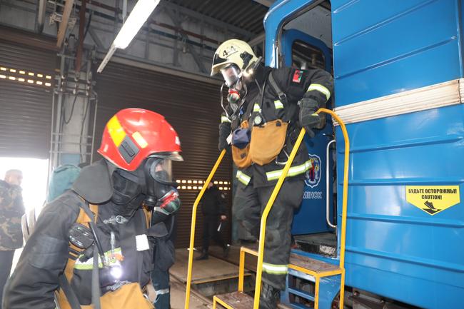 Ситуация усугублялась тем, что в этот момент создалась угроза распространения огня на соседние вагоны и кровлю. В цеху произошло задымление, белая пелена окутала достаточно большое пространство (для имитации возгорания использовались дымогенераторы). Бойцы МЧС были в полной амуниции, в масках и с аппаратами обеспечения дыхания кислородом. Тем не менее они смогли обнаружить среди дымовой завесы пятерых пострадавших, которым требовалась помощь. Их вынесли на улицу, где есть приток свежего воздуха. Дальше уже в работу включились медики, которые оказали квалифицированную помощь. В итоге все были спасены.