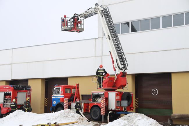 При проведении разведки спасатели обнаружили условный пожар на общей площади 120 кв. метров. Однако руководитель учений решил усложнить обстановку на месте происшествия. Поступила вводная о том, что пожар распространился на кровлю здания и его общая площадь составила уже 265 кв. метров. В результате были задействованы две специальные машины с вышками, поднявшие бойцов МЧС на достаточно большую высоту для тушения огня на кровле цеха электродепо.