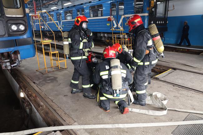 По легенде учений, в результате проведения сварочных работ произошло загорание двух вагонов подвижного состава на одной из канав отстойно-ремонтного корпуса. После условной сработки пожарной сигнализации дежурный по электродепо сразу проинформировал службу 112, а также ситуационный центр предприятия. Было снято напряжение со всего веера электродепо – обесточены контактные рельсы на наземных путях во избежание поражения током работников этого структурного подразделения и спасателей. До прибытия сотрудников МЧС была оперативно организована эвакуация всех представителей трудового коллектива из опасной зоны. Пожарная дружина метрополитена приступила к ликвидации очага загорания на одной из смотровых канав.