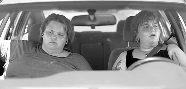В видео всего 27 секунд. На перекрестке замер грузный автомобиль, судя по всему, Toyota Prius Plug-In. В нем сидят две девушки с короткими стрижками, зелеными волосами, пирсингом, тату и избыточным весом. Можно предположить, что они принадлежат к сообществу ЛГБТ, хотя в ролике это не обозначено прямо.