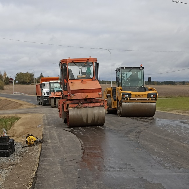 А пока за асфальтоукладчиком следуют три машины-катка: пневматический, гладковальцовый и комбинированный. Асфальтобетон подвозит грузовик от Высоковского ДРСУ № 137. Одна полоса почти готова, уложат другую – и брестчане приступят к нанесению разметки.