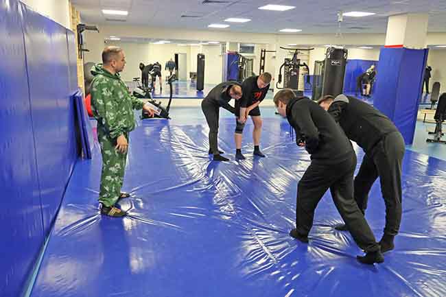 Сотрудники службы безопасности на занятиях по специальной подготовке